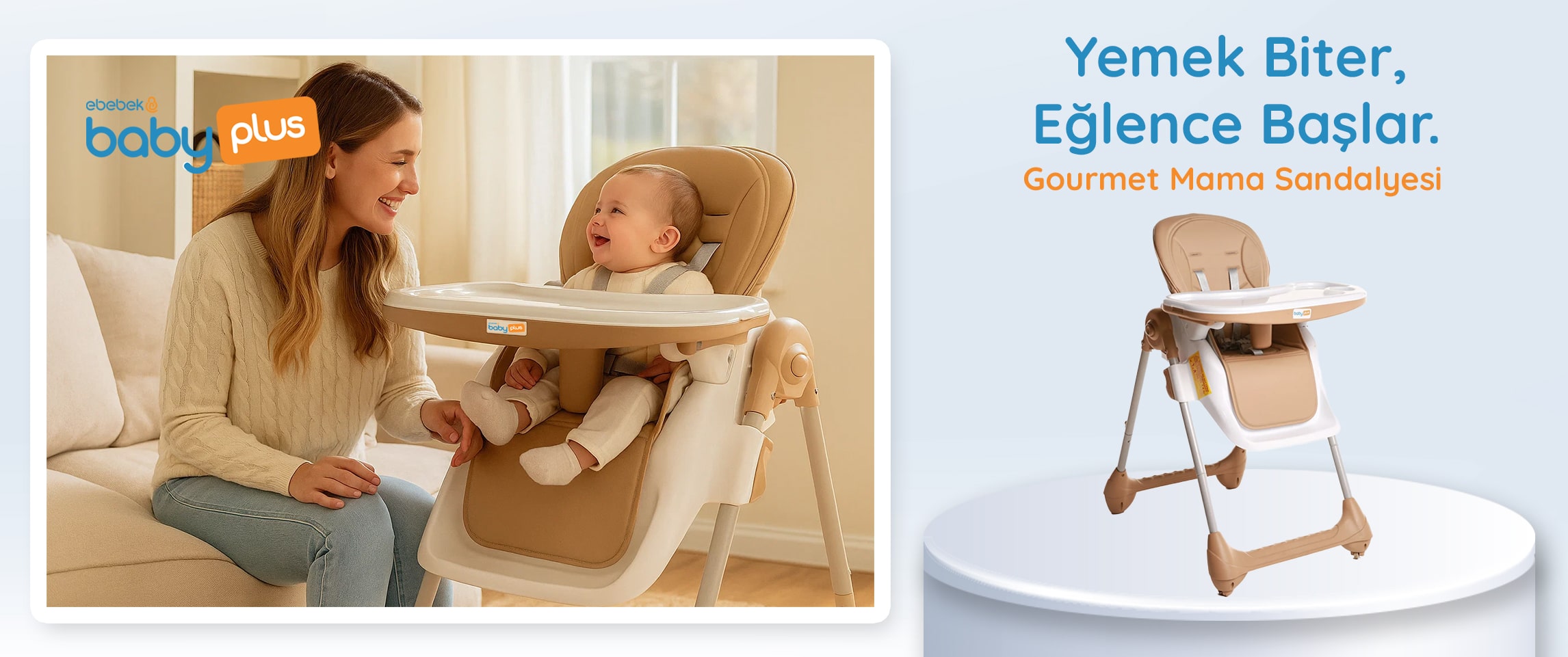 baby plus Gourmet Mama Sandalyesi, bebeklerin sağlıklı ve konforlu bir şekilde beslenmesi için tasarlanmış pratik ve güvenilir bir mama sandalyesidir. Ev içinde kolay hareket ettirilebilir yapısı, ayarlanabilir sırt ve tepsi sistemi ile ebeveynlere kullanım kolaylığı sunarken; bebeğin hassas cildine uygun yumuşak malzemeleri sayesinde konforlu bir oturma deneyimi sunar. Avrupa standartlarına uygun olarak üretilen dayanıklı yapısı ile güvenli kullanım imkânı sağlar.
