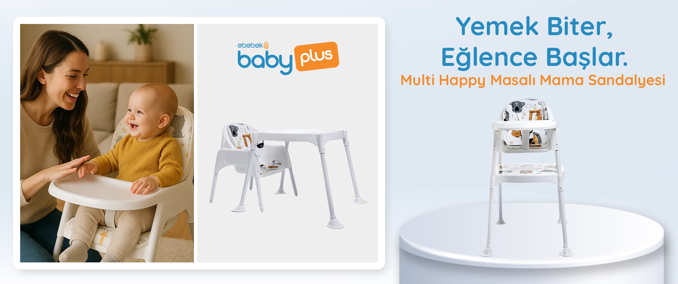 baby plus Multi Happy Masalı Mama Sandalyesi hem mama sandalyesi hem de aktivite masası olarak kullanılabilen çok yönlü bir mama sandalyesidir. Geniş oturma alanı, kaymaz ayakları ve güvenli tasarımı sayesinde bebeklerin beslenme ve oyun zamanlarında konforlu bir kullanım sunar. Kompakt yapısı sayesinde toparlandığında minimum yer kaplar ve ev içerisinde pratik bir kullanım sağlar. Avrupa standartlarına uygun olarak üretilmiş güvenilir bir üründür.