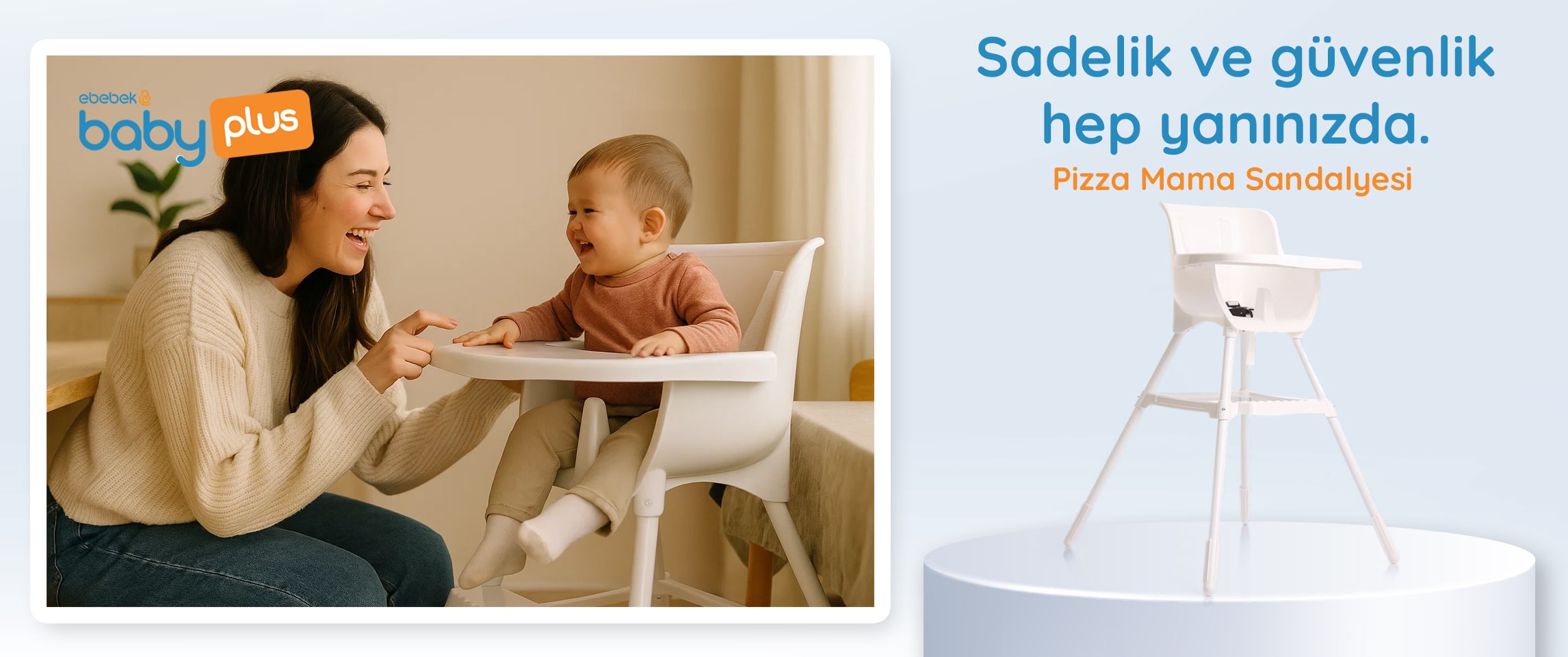 Baby Plus Pizza Mama Sandalyesi ile bebeğinizin her öğünü keyifli, güvenli ve konforlu bir deneyime dönüşsün, şık tasarımı ve pratik kullanımıyla evinizde vazgeçilmez bir yardımcınız olsun.