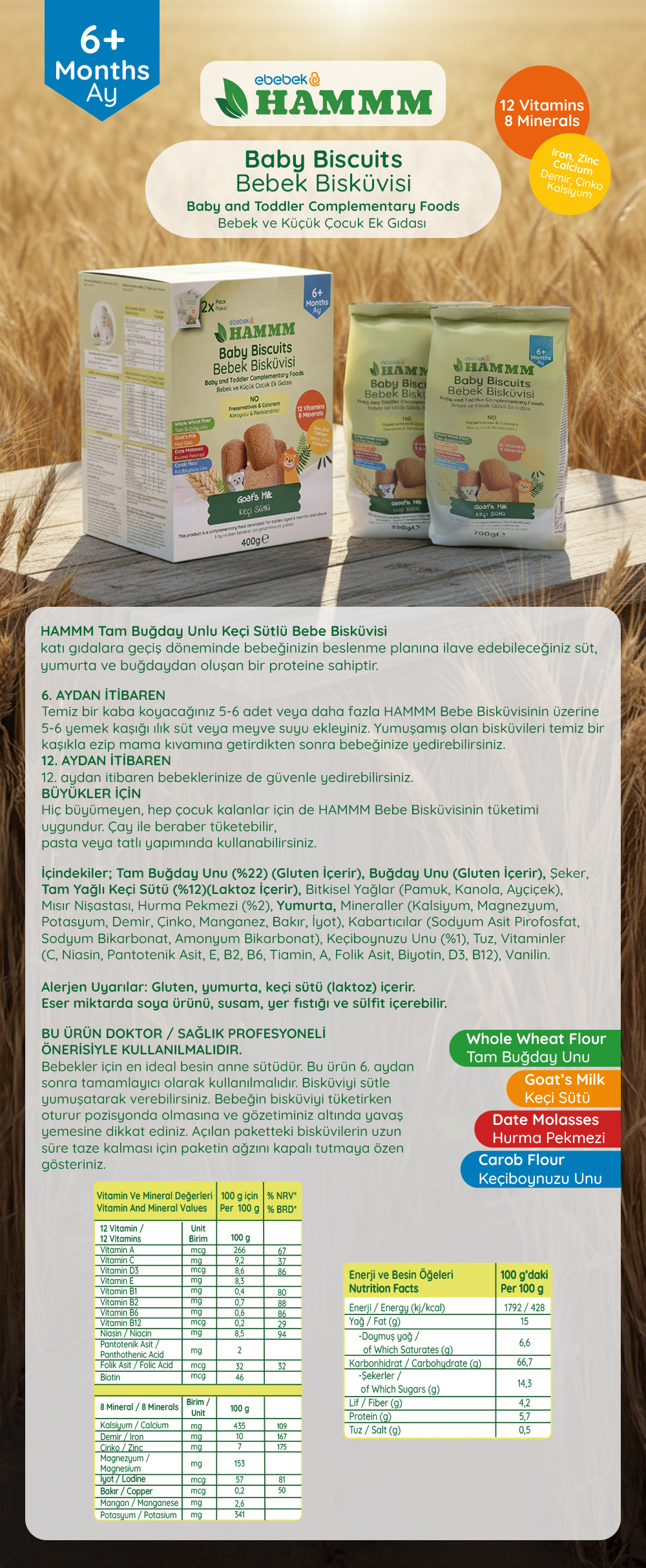 - Hammm Keçi Sütlü Bebek Bisküvisi, koruyucu ve renklendirici içermez.