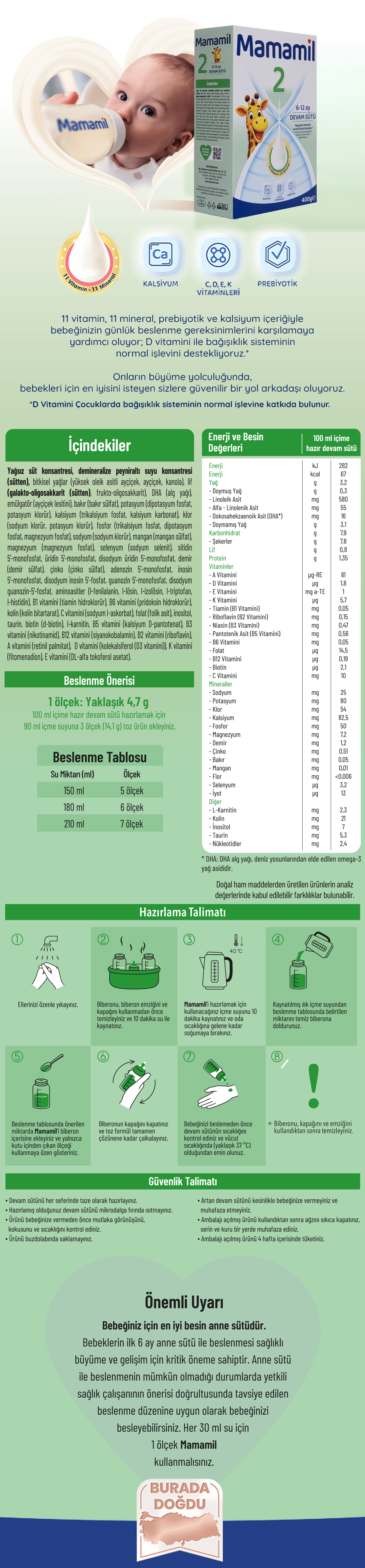 MAMAMİL 2 Devam Sütü 400G İçeriği