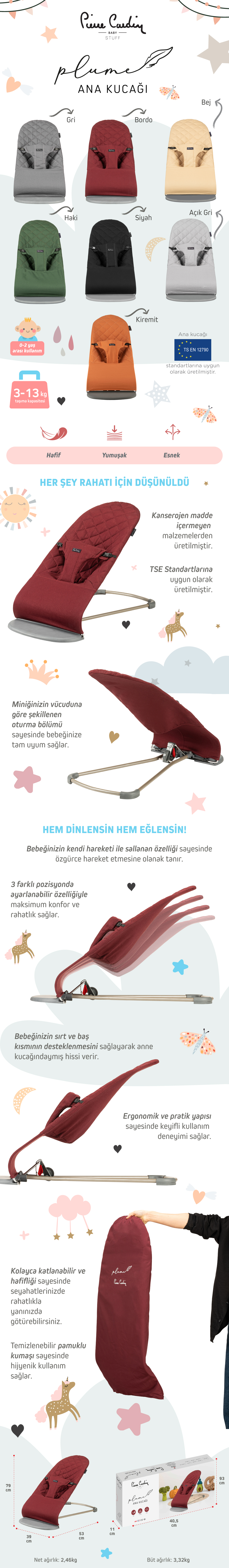 - Malzeme Kalitesi: Kanserojen madde içermeyen güvenli malzemelerden üretilir. Pierre Cardin Plume ana kucağı bordo rengi de seçenekler arasındadır.