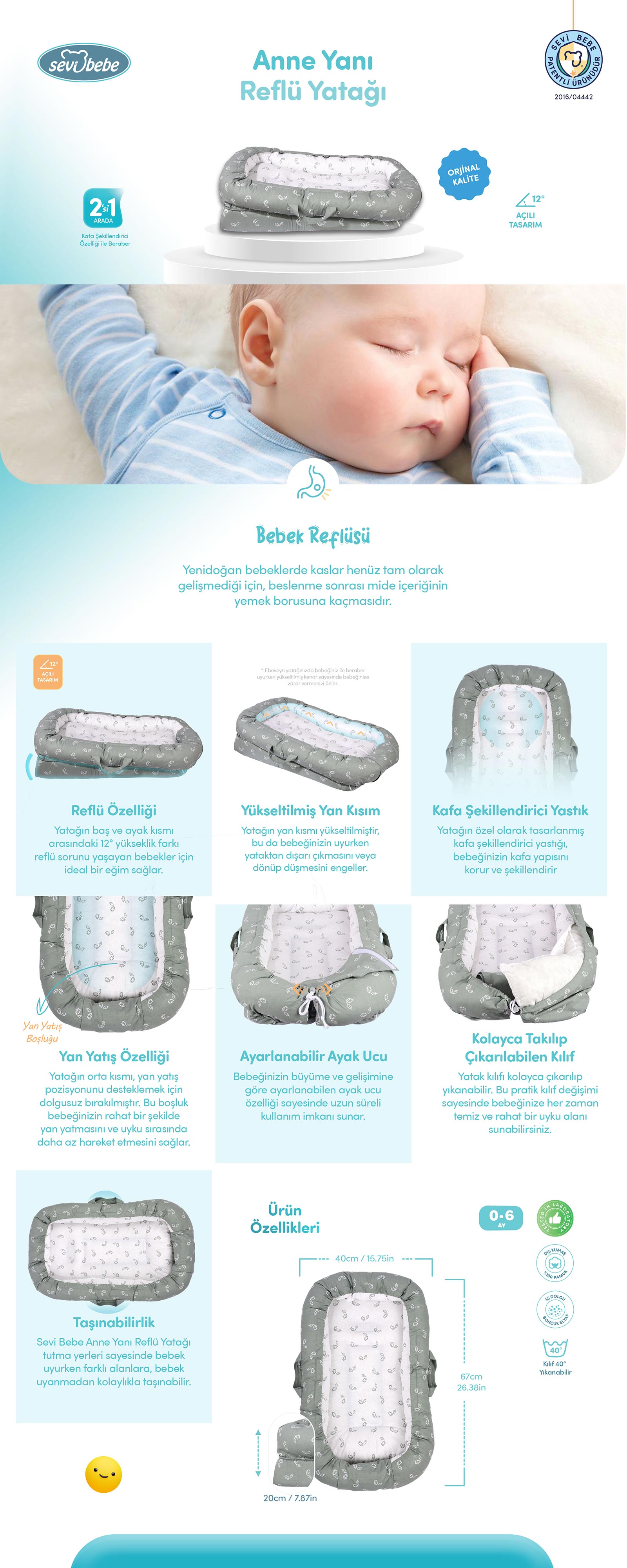 Sevi Bebe Anne Yanı Bebek Reflü Yatağı Yeşil